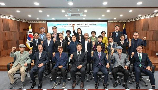 이날 행사에서 AMP 4기 동기회는 모교의 지속적인 성장과 발전을 기원하며 발전기금 1000만 원을 쾌척했다. 전달식에는 이승규 동기회장을 비롯한 19명의 졸업 동문과 가족들이 함께해 모교를 향한 뜨거운 애정을 표현했다.