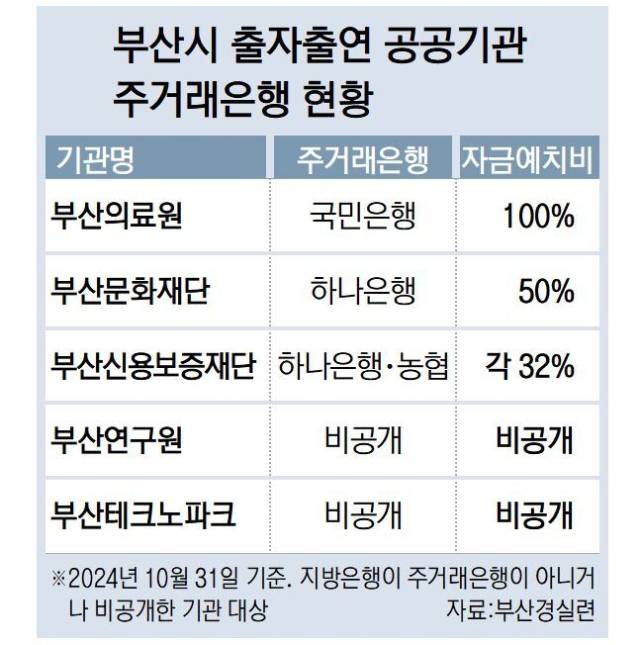 부산시는 지난 8일부터 시 산하 공공기관 중 지방은행 예치 비율이 낮은 기관을 중심으로 현황 파악에 나섰다. 일부 산하 기관 예치율이 낮은 이유를 찾아 내용을 뜯어보겠다는 취지다.