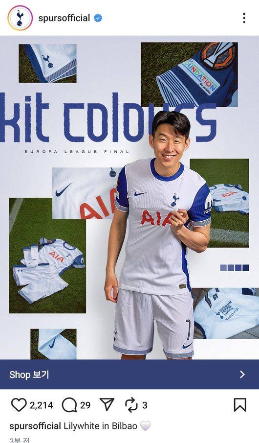토트넘은 지난 18일(한국시간) 자신의 SNS를 통해 유로파리그 결승전에 입을 유니폼을 공개했다. 토트넘이 홈팀으로 배정돼서 홈킷을 입는다. 그리고 결승전에 입을 유니폼의 모델로 손흥민을 배치했다. 부상으로 출전 여부가 엇갈리던 손흥민을 정면 배치하면서 사실상 결승전 선발 출격을 예고했다.