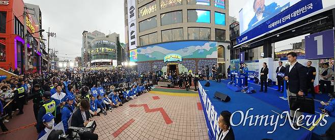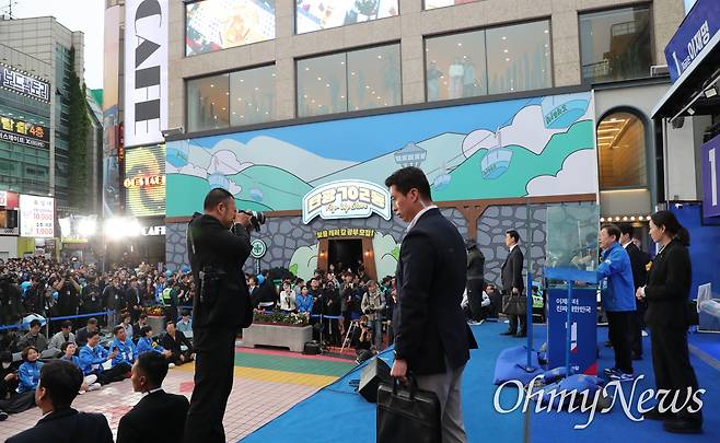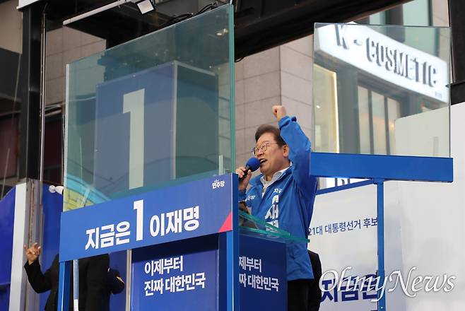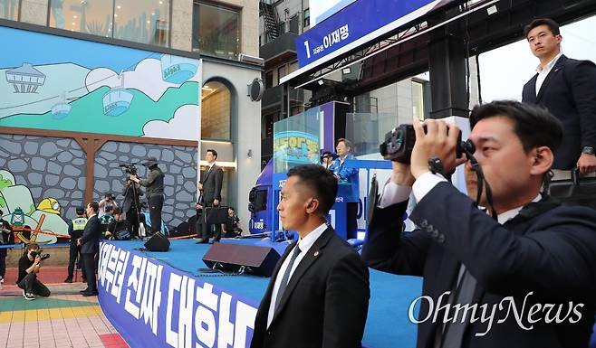 [오마이포토] 이재명 유세장에 등장한 방탄유리