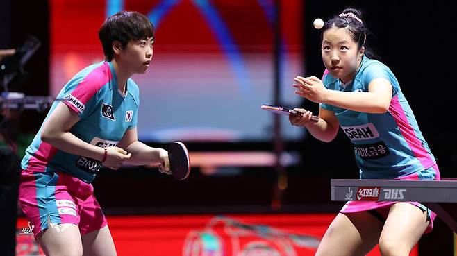 2023년 항저우 아시안게임 때 여자복식 금메달을 합작했던 전지희(은퇴)가 국가대표를 반납하면서 유한나와 새롭게 호흡을 맞춘 신유빈은 알제리 조를 맞아 시종 우위를 점한 끝에 승리했습니다.