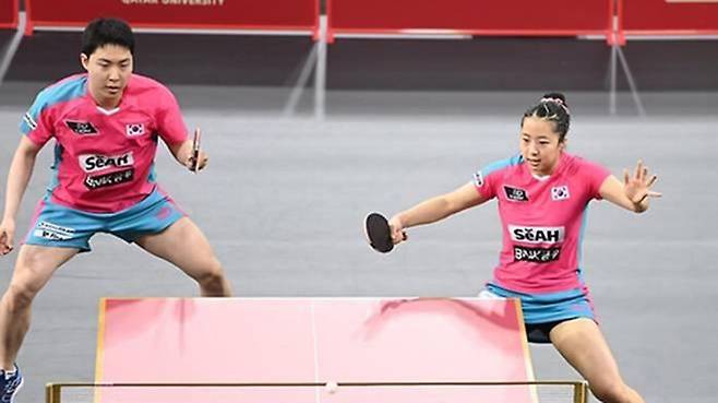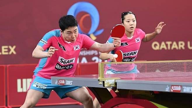 ▲ 탁구 세계선수권 혼합복식에 나선 신유빈(오른쪽)과 임종훈의 경기 장면
