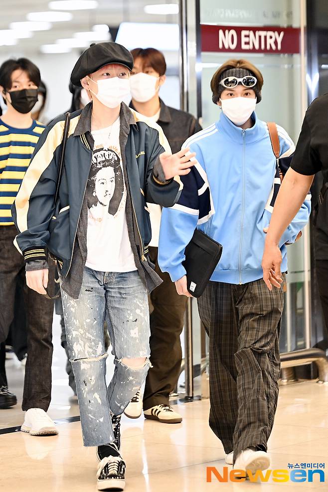 트레저(TREASURE) 멤버 지훈, 요시, 준규, 윤재혁, 아사히, 도영, 하루토, 박정우, 소정환이 5월 19일 오후 서울 강서구 방화동 김포국제공항 국제선을 통해 해외 일정을 마치고 일본에서 입국하고 있다.