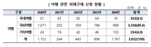 '패키지여행 계약해제 시 과다 위약금' 여행 관련 소비자 피해 증가