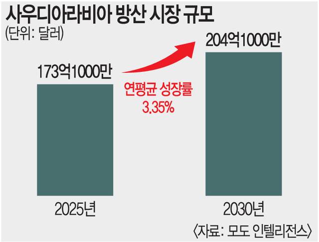 한국은 사우디의 군 현대화 수요에 맞춰 시장 공략에 나섰다. 한화에어로스페이스는 대표 지상 무기인 K9 자주포와 함께 레드백 장갑차, 무인수색차량 등 신형 무기체계를 사우디 방산 전시회에 선보이며 현지화·기술이전·운용유지를 묶은 패키지형 전략을 강화하고 있다. LIG넥스원이 생산하는 국산 중거리 지대공 유도무기 ‘천궁-Ⅱ’는 지난해 2월 약 32억 달러(약 4조4502억원) 규모로 사우디에 수출했다. 한국은 이를 계기로 방산 분야에서 사우디와의 실질적 수출 실적을 쌓아가고 있다.