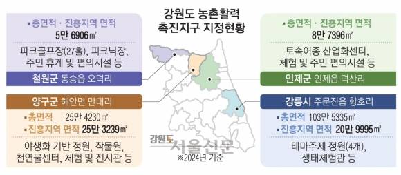 이미 강원도는 ‘강원특별법’에 따라 농촌활력촉진지구 특례가 적용 중이다. 지난해 강릉·철원·양구·인제 등 4개 시군 약 61만㎡, 올해 철원·인제·횡성·화천 등 4개 시군 54만 8000㎡의 농업진흥지역이 해제됐다. 이에 따라 철원군은 대규모 체육시설 및 직거래 장터를, 인제군은 농공단지 및 주거시설 등을 조성할 수 있게 됐다.