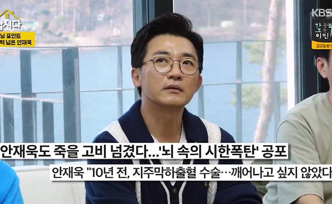 한때 생사의 갈림길에 섰던 안재욱은 10년 전 지주막하출혈 수술을 했었다고. 그는 "심지어 외국에서 뇌출혈이 있었다. 드라마가 연장되면서 계획보다 여행이 길어졌다. 친한 형의 결혼식 사회도 볼 겸 일정을 잡아뒀다. 그런데 연창 촬영으로 불참하게 됐다. 드라마 종영 후 2주 휴가를 받아서 미국을 갔다. 친한 형 부부와 함께 여행을 시작했다"고 말문을 열었다.