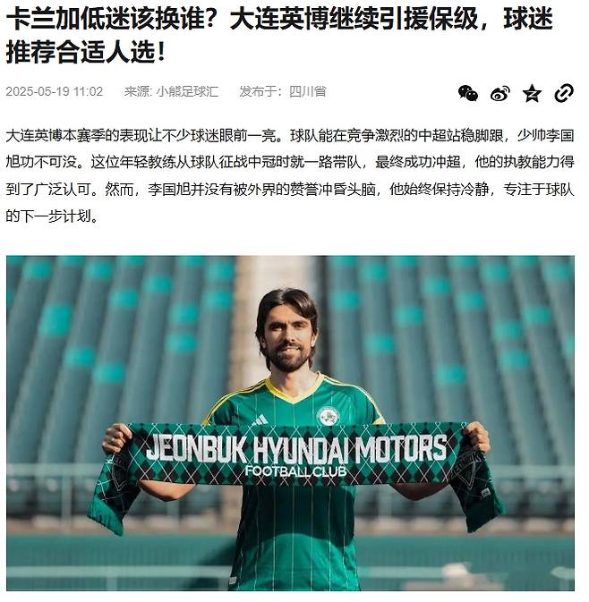 중국 '소후닷컴'은 19일(한국시간) '페르난도 카랑카의 부진, 대체자는 누구?'라는 타이틀을 내걸고 "다롄 잉보는 잔류를 위해 추가 영입을 추진할 계획이다. 팬들 사이에서 적임자의 이름이 거론되고 있다"라고 보도했다.