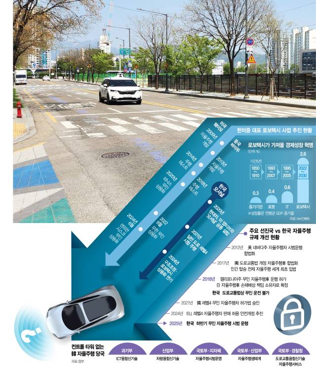 미국 연방교통부가 2016년 인공지능(AI) 자율주행컴퓨터를 운전자로 인정하고 2018년 중국은 법제를 정비해 포니.AI가 로보택시를 운행하기 시작했다. 2021년에는 독일이 무인 자율주행차 허가법, 일본도 무인 자율주행을 위해 도로교통법을 제정했지만 한국은 아직도 법 규제를 고수하고 있다.