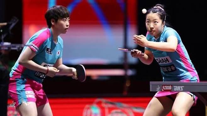 ▲ 세계탁구선수권 여자 복식에 나선 신유빈(오른쪽)과 유한나