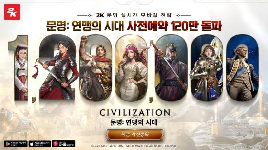 최근 2K는 시드 마이어의 '문명' 시리즈 기반 모바일 전략 신작 '문명: 연맹의 시대'의 아시아 지역 사전 예약자 수가 약 2주 만에 120만 명을 돌파했다고 밝혔다.