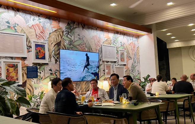 ◆ 유상범> 네, 어제 저녁에 저희가 여기 한 4시쯤 도착을 해서 김대식 의원께서 바로 전화를 했고 그래서 전화를 해서 저녁 약속을 6시로 잡았습니다. 그래서 여기 아웃리거 리조트에 있는 식당에서 만나서 한 4시간 정도 홍준표 시장과 깊은 대화를 나눴습니다.