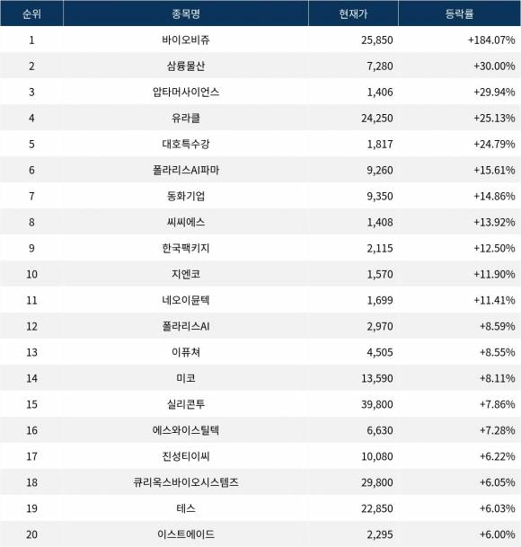 [서울데이터랩]바이오비쥬 184.07% 폭등…실시간 상승률 1위
