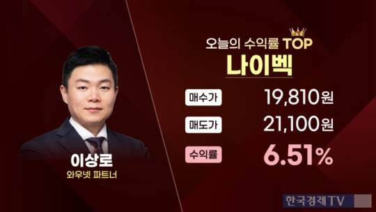 한편 이날의 수익률 1위는 이상로(베스트인베스트) 대표가 차지했다. 이 대표는 ▲나이벡(138610)을 추천하며 수익률 6.51%를 기록했다.