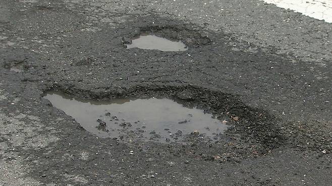 이곳을 지나던 차량 2대의 바퀴가 포트홀에 빠지면서 파손됐습니다.