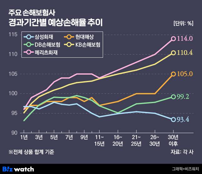 금감원 관계자는 "실제 손해율과 예상 손해율이 다르다는 것을 지적한 것인데, 사실 올해 실제 손해율이 좋지 않았다고 해서 당해 연도 만으로 예상 손해율을 잡는 게 아니다"라며 "직전 5개년을 기반으로 추정하기 때문에 특정 연도 하나만 놓고 예상치와 직접 비교하는 것은 의미가 없을 수 있다"고 말했습니다. '손해율 패턴 자체'를 봐야 한다는 이야깁니다.