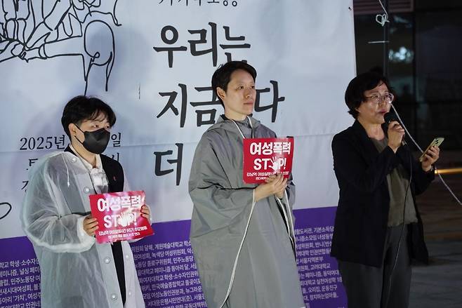 | ▲ 강남역 여성살해사건 9주기 추모행동 정당발언 (노동당, 녹색당, 민주노동당) 강남역 여성살해사건 9주기 추모행동에서 노동당 여성위원회 준비위원회 케이, 녹색당 김지윤 사무처장, 민주노동당 신현자 여성위원장이 발언을 하고 있다. |