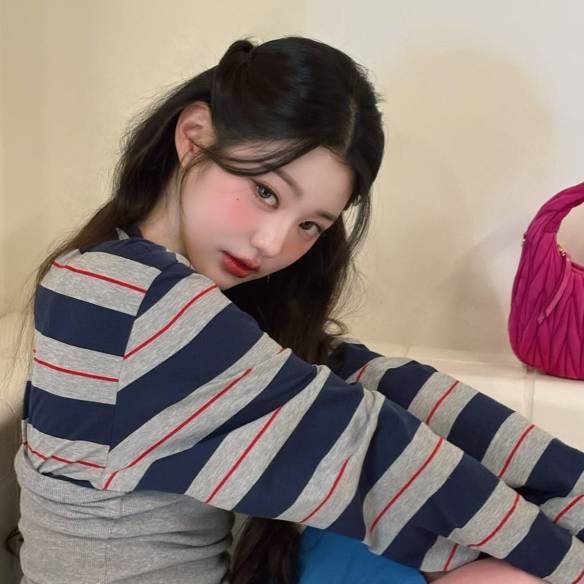 매일 입던 스트라이프 티셔츠를 색다르게 입을 방법은 없냐고? 그럴 땐 원영이처럼 입어보자. 루즈한 실루엣의 줄무늬 티셔츠에 튜브톱을 매치해 보디라인을 살려낸 것. 늘 입던 일상적인 아이템도 어떻게 매치하느냐에 따라 새롭게 즐길 수 있다는 사실을 잊지 말 길.