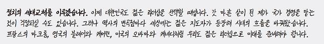| ▲ 이준석 개혁신당 대선 후보는 선거공보에 실은 자필 편지에서 40대 정치 지도자를 언급했다. |