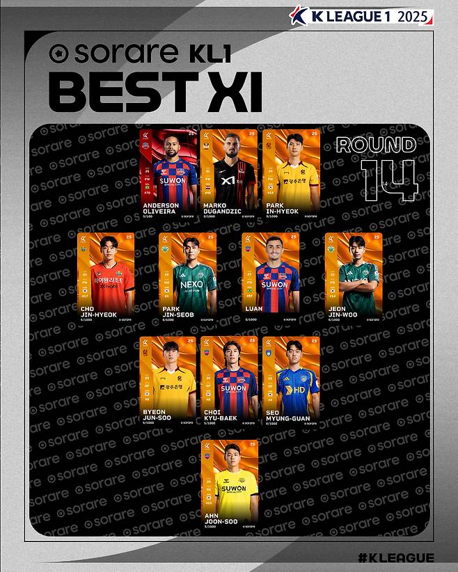 수원FC는 안데르손, 루안, 최규백, 안준수 등 포지션별 4명의 선수들이 라운드 베스트11에 이름을 올렸고, K리그1 14라운드 베스트 팀에도 선정되는 경사를 맞았다.