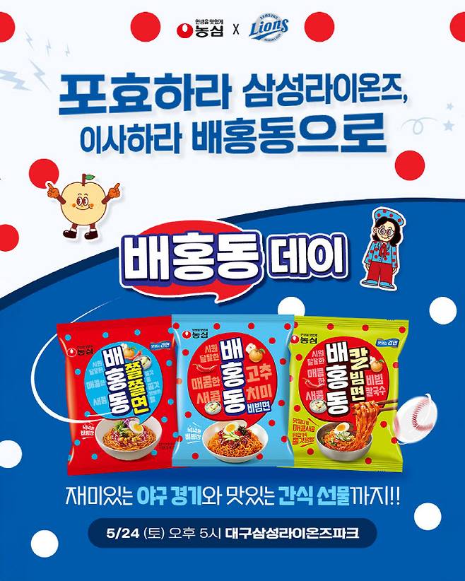 삼성라이온즈, 24일 대구 홈경기 '농심 배홍동데이' 진행