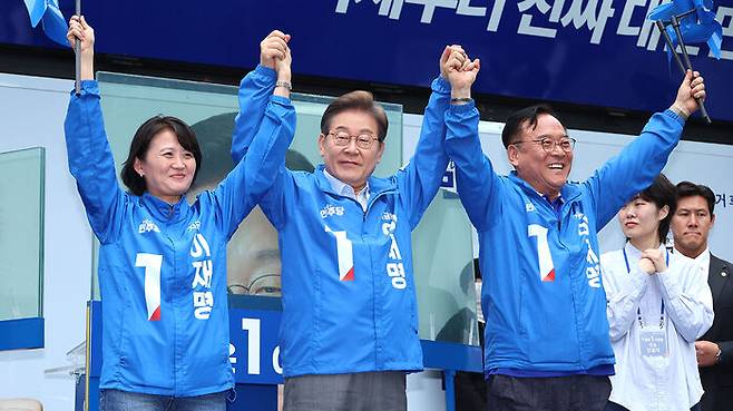 - "모셔 왔어요" 허은아 손 '번쩍'…이재명 지지 선언