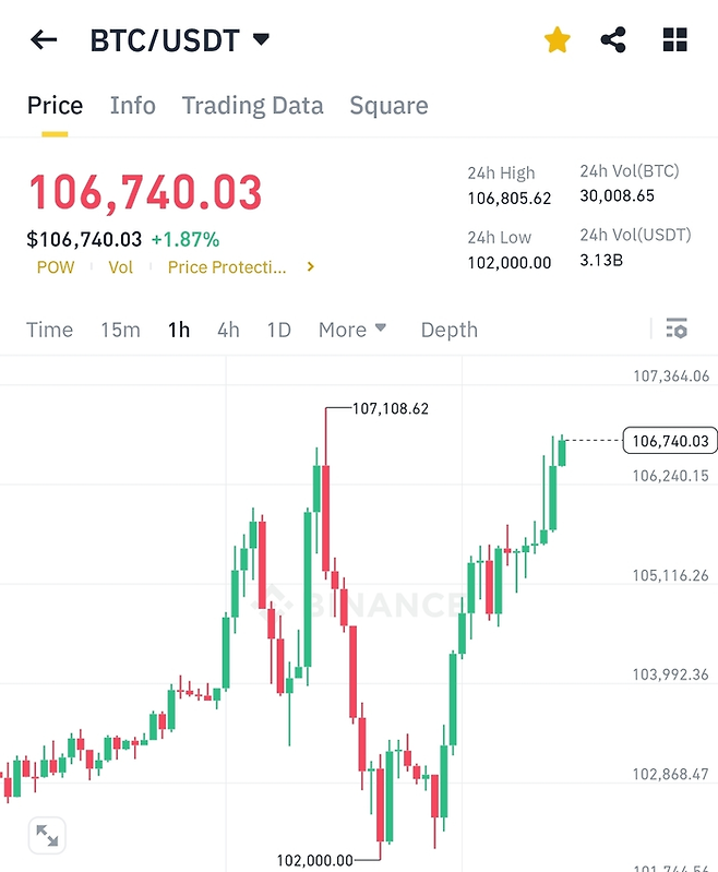 전날 10만7000달러를 넘긴 뒤 급락했던 비트코인은 밤사이 낙폭을 모두 만회했다.