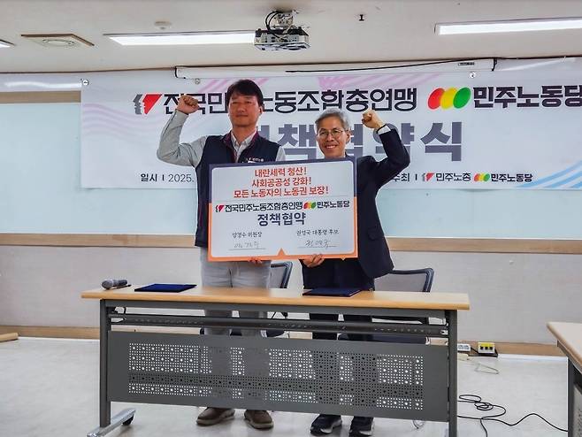| ▲ 전국민주노동조합총연맹(민주노총)의 산별노조 중 가장 많은 조합원이 소속된 전국공공운수사회서비스노동조합과 전국금속노동조합이 민주노동당 권영국 대선후보의 지지를 선언했다. |