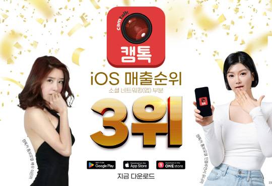 2025년 5월 15일 기준 iOS 앱스토어 매출 순위에서 캠톡은 전체 33위를 기록하며 틴더(37위)를 앞섰다. 특히 게임을 제외한 비게임 카테고리에서는 전체 12위에 오르며 글로벌 메신저·소셜미디어 강자들과의 경쟁에서도 두각을 나타냈다. 이는 앞서 구글플레이에서 인스타그램을 넘어선 데 이어, 애플 iOS 플랫폼에서도 글로벌 시장에서의 저력을 증명한 사례다.