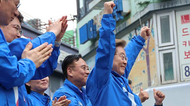 ▲ 더불어민주당 이재명 대선 후보가 20일 경기 의정부 로데오거리에서 열린 유세에서 시민들에게 인사하고 있다.