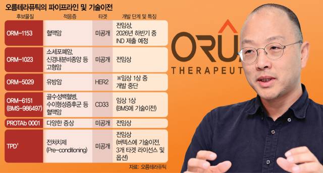 오름테라퓨틱은 후속 핵심 파이프라인으로 선택한 혈액암 치료제 ‘ORM-1153’에 당분간 집중하겠다는 생각이다. 이 대표는 “이번 임상 철회는 항체와 링커의 문제일뿐 DAC 플랫폼 자체의 문제가 아니다”며 “ORM-1153을 통해 DAC 플랫폼인 ‘티피디 스퀘어’(Dual-precision Targeted Protein Degradation·TPD²)의 확장성과 가능성을 증명할 것”이라고 밝혔다. 올해 말 관련 학회에서 ORM-1153 관련 추가 데이터 공개하고 내년 말 미국 식품의약국(FDA)에 임상시험계획서(IND) 제출할 계획이다.