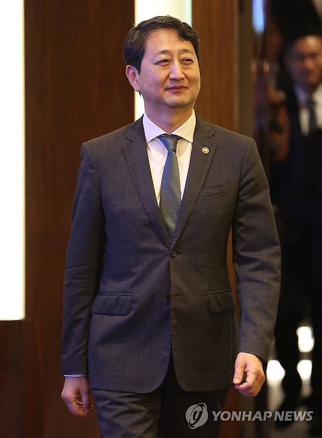 (서울=연합뉴스) 김성민 기자 = 안덕근 산업통상자원부 장관이 20일 서울 중구 웨스틴조선호텔에서 열린 'K-온디바이스 AI반도체 협력포럼'에 입장하고 있다. 2025.5.20
