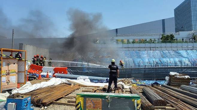 평택 공원 지하주차장 공사장서 불…130여 명 한때 대피