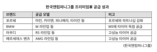 실제로 한국타이어는 지난 2015년 포르쉐 마칸의 신차용 타이어 공급을 성사한 데 이어 이어 카이엔, 파나메라, 718 박스터, 타이칸 등에도 타이어를 공급하며 포르쉐와의 파트너십을 대폭 확대했다. BMW 'M', 아우디 'RS', 벤츠 '메르세데스-AMG' 등 글로벌 프리미엄 브랜드의 고성능 차량에도 한국타이어의 제품이 장착된다. 특히 지난해 10월 출시된 BMW M5 7세대 모델에는 초고성능 타이어인 '벤투스 S1 에보 Z'가 독점으로 공급되고 있다.