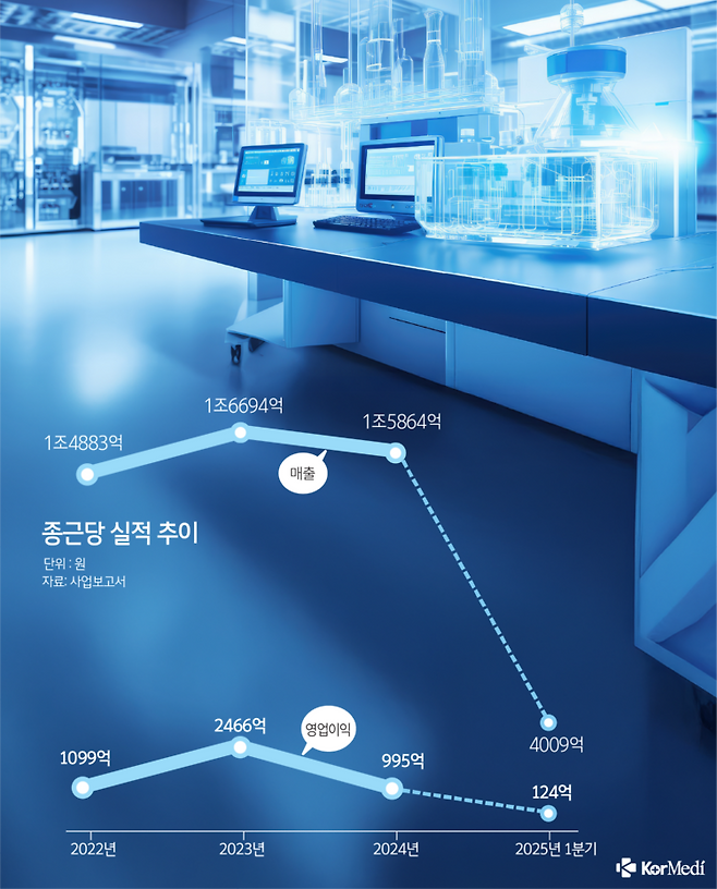 2023년 말 1조7000억원 규모의 기술수출로 주목받았던 종근당이 실적 부진과 신약 성과 공백이라는 이중고에 시달리고 있다. 이에 세포·유전자 치료제 전문기업 앱클론에 투자하는 등 돌파구를 찾고 있다.