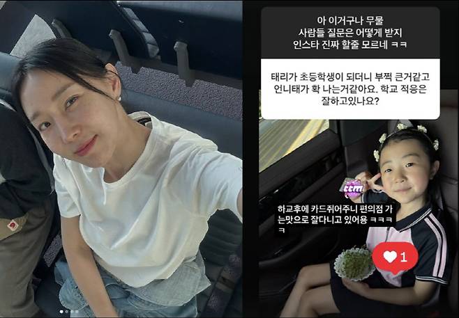 여러 질문이 오간 가운데 한 팬은 "태리가 초등학생 되더니 부쩍 큰 거 같고 언니 태가 확 나는 거 같다. 학교 적응은 잘하고 있냐"고 물었다. 이에 이지혜는 "하교 후에 카드 쥐어주니 편의점 가는 맛으로 잘 다니고 있다"고 답했다.