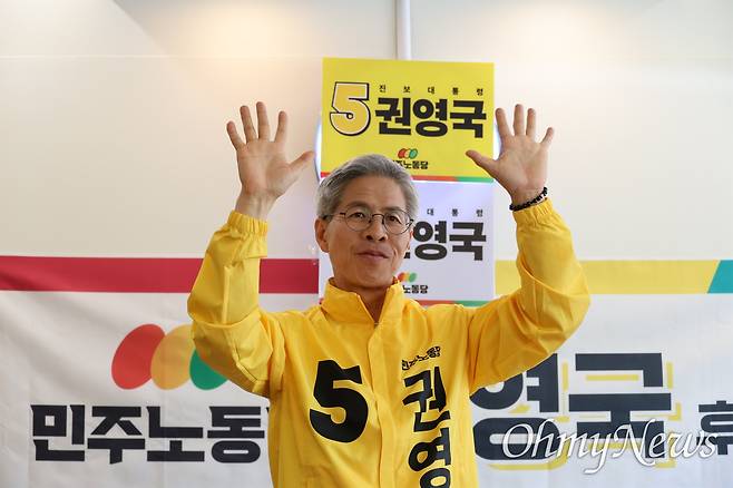 김문수 국민의힘 후보에 대해 권 후보는 "김 후보는 노동운동가 출신은 맞지만 1994년부터 완전히 정반대의 길을 가고 있다. 이제는 노동자보다 권력을 좇는 인물"이라며 "노동운동의 이름을 더럽히지 말라"고 직격했다.