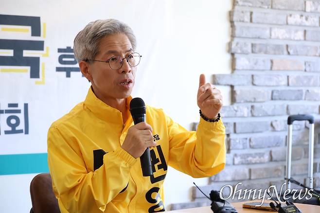 | ▲ 권영국 민주노동당 대선 후보가 20일 오후 대구 북구 경북대 인근 카페에서 기자들과 만나 기자간담회를 하고 있다. |