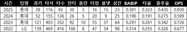 | ▲ 롯데 유강남의 올시즌 주요 타격 기록(출처: 야구기록실 kbreport) |