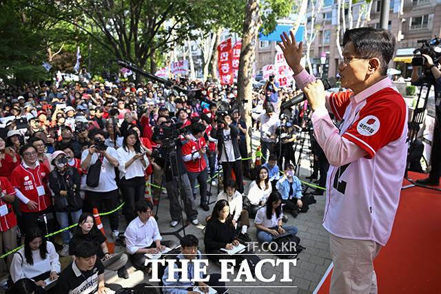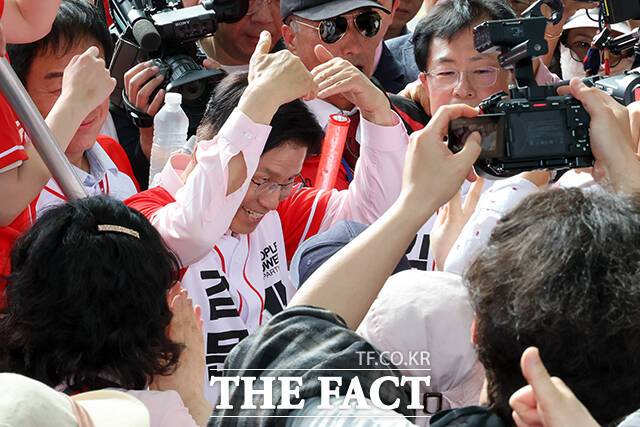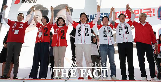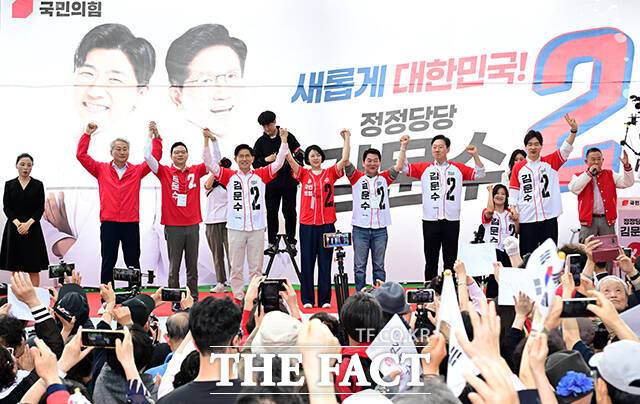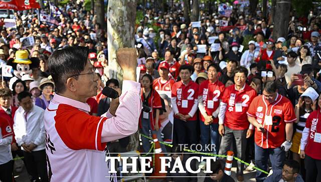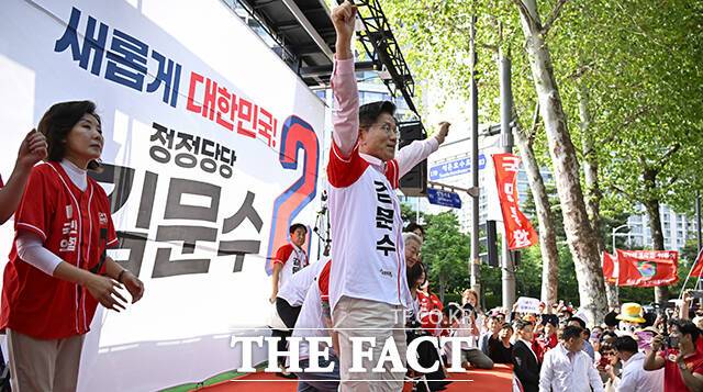 [더팩트ㅣ임영무 기자] 김문수 국민의힘 대선 후보가 20일 서울 송파구에서 열린 송파를 새롭게 유세에서 유권자들을 향해 지지를 호소하고 있다.