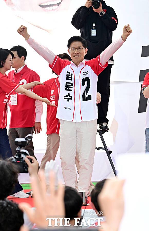 김문수 후보는 이날 유세에서 "저한테도 요즘 경호원들이 많이 붙는다"며 "지금 대통령 후보니까 혹시 해를 끼칠 일이 없을까 해서"라고 설명했다.
