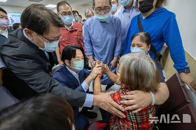 교통사고 피해자들 위로하는 라이칭더 대만 총통