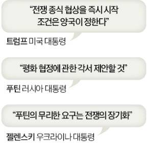 앞서 우크라이나는 러시아에 협상을 시작하기 전 ‘30일간 전면 휴전’할 것을 요구했다. 하지만 러시아는 휴전이 우크라이나에 재정비 시간을 제공할 뿐이라며 응하지 않았다. 젤렌스키 대통령은 이날 협상 조건과 관련해 “만약 러시아가 우리 영토에서 철군할 것을 요구한다면 이는 휴전이나 종전을 원치 않는다는 의미”라고 맞섰다.