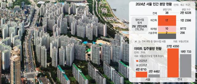 빈 땅이 없어 공공 분양이 어려운 서울에서 정비사업은 분양 물량 80~90%를 책임지는 핵심 공급원이다. 부동산시장 분석업체인 부동산인포에 따르면 지난해 서울에서 민간 분양된 38개 단지 중 29개가 정비사업지였다. 총 분양 가구 2만 6228가구 중 85.5%인 2만 2426가구가 정비사업에서 나왔다. 사업별로 △재건축 1만 2398가구 △재개발 9772가구 △가로주택 256가구다.