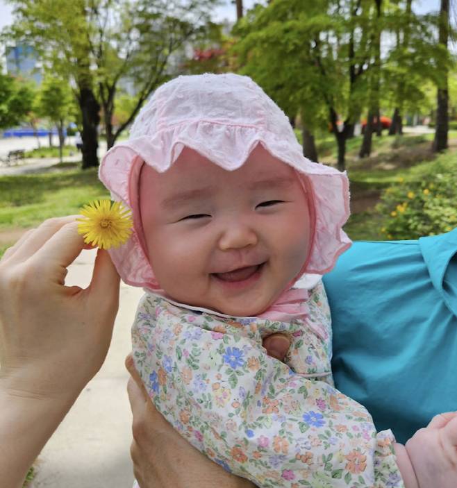 그런가 하면 딸이 활짝 웃는 모습도 공개해 눈길을 끌었다. 해맑은 웃음이 한없이 사랑스럽다.