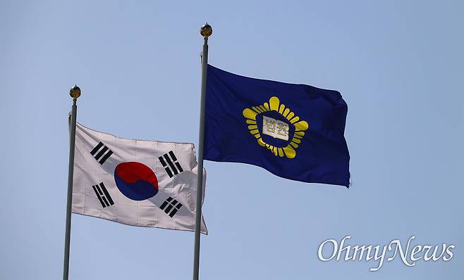 | ▲ 24일 오후 서울 서초구 대법원에서 태극기와 법원기가 휘날리고 있다. |