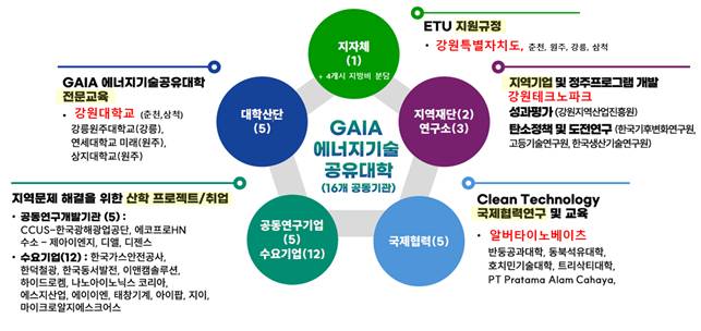 강원테크노파크 등 지역 재단 2곳과 연구소 5곳은 창업 및 취업 연계, 기업 맞춤형 지원 사업을 추진하고 공동연구기업 5곳과 수요기업 12곳이 참여해 현장실습 및 채용 연계 산학협력 프로젝트를 진행할 예정이다.