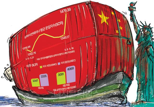강성진 KB증권 연구원은 "미국이 중국에 관세를 낮춰 적용하는 90일 동안 미국으로 화물을 보내려는 중국산 화물들이 몰리기 시작해 미 서안행 컨테이너선 운임이 갑작스럽게 상승했다"고 진단했다.