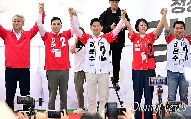 | ▲ 김문수 국민의힘 대선후보가 20일 서울 송파구 석촌호수 입구 앞에서 열린 송파를 새롭게 유세에서 지지를 호소하고 있다. |