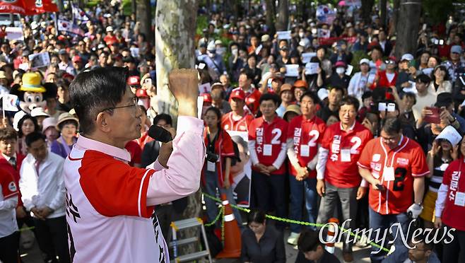 | ▲ 김문수 국민의힘 대선 후보가 20일 서울 송파구에서 열린 '송파를 새롭게' 유세에서 지지를 호소하고 있다. |